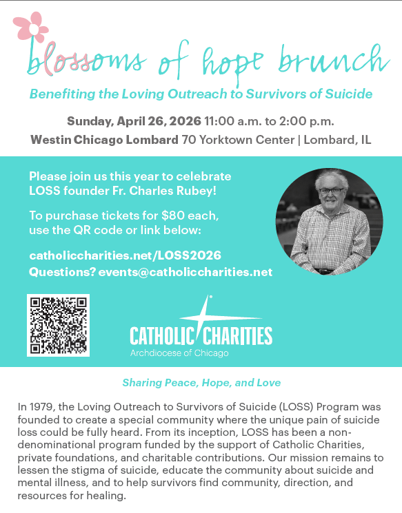In 1979, the Loving Outreach to Survivors of Suicide (LOSS) Program was founded to create a special community where the unique pain of suicide loss could be fully heard. From its inception, LOSS has been a nondenominational program funded by the support of Catholic Charities, private foundations, and charitable contributions. Our mission remains to lessen the stigma of suicide, educate the community about suicide and mental illness, and to help survivors ind community, direction, and resources for healing.